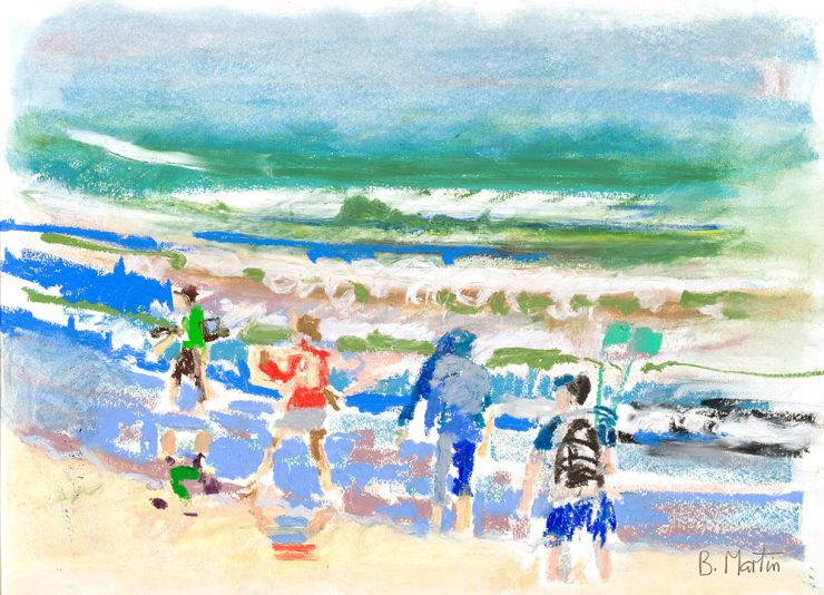 High Tide Beadnell Beach oil pastel on paper H40cm x W50cm SOLD
