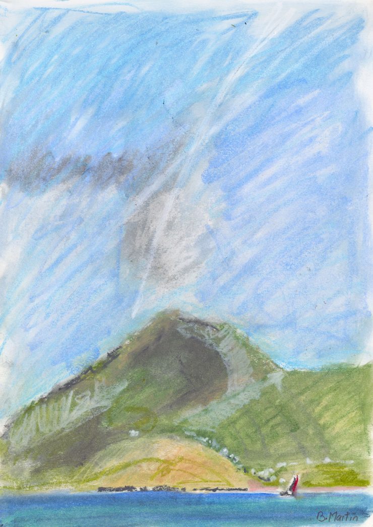 Little Sailing Boat South Uist oil pastel on paper SOLD