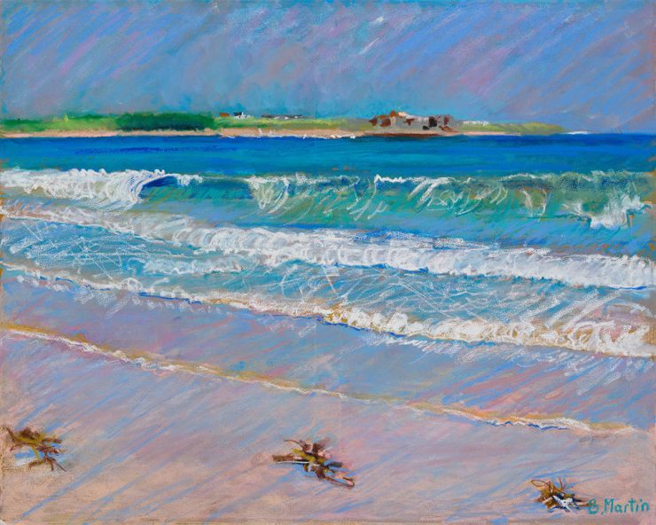 Pink Sands Beadnell Beach oil on canvas H80cm x W100cm