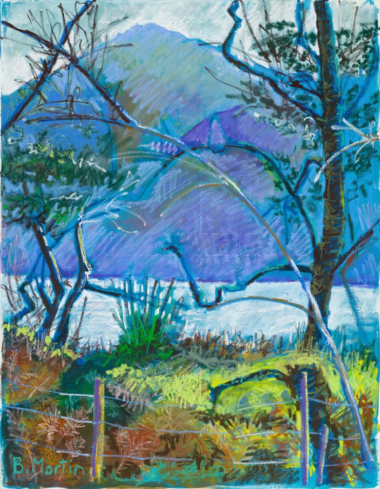 Sparkling Loch Sunart and Purple Hills – Oil pastel on canvas (H90cm x W70cm)